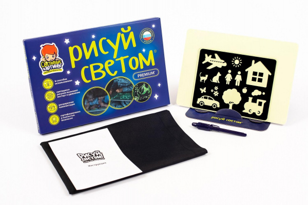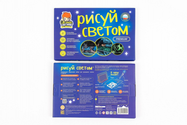 Творческий набор Световые картины предназначен для того, чтобы превратить совместный досуг с ребенком в сказку. Увлекательная технология рисования светом в темноте заставляет вас поверить в чудеса!