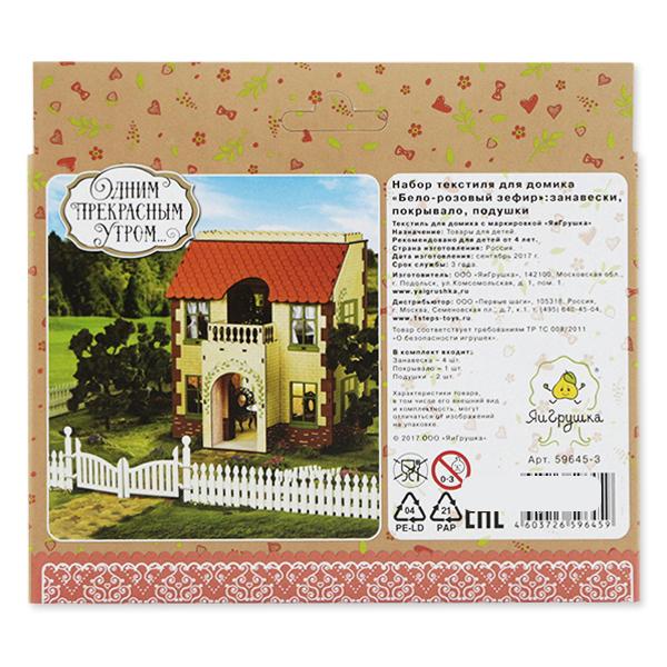 С помощью текстильных изделий ребенок учится создавать уют для любимых кукол, определять виды тканей на ощупь и хозяйничать по дому в сюжетно-ролевой игре. Изысканный комплект бело-розового постельного белья и штор формирует у малышки эстетический вкус. Декорирование кукольного домика развивает дизайнерские способности. Липучки на занавесках позволяют менять оформление интерьера много раз.